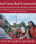 - Naturally Organic & Regenerative — Our cacao grows naturally in remote regions of the Amazon, far from industrial agriculture and chemical exposure. It thrives under the forest canopy in biodiverse ecosystems — untouched, unforced, and naturally organic by origin. While not formally certified, our cacao is cultivated using traditional and regenerative methods that honor the land, the farmers, and the natural rhythm of the forest.